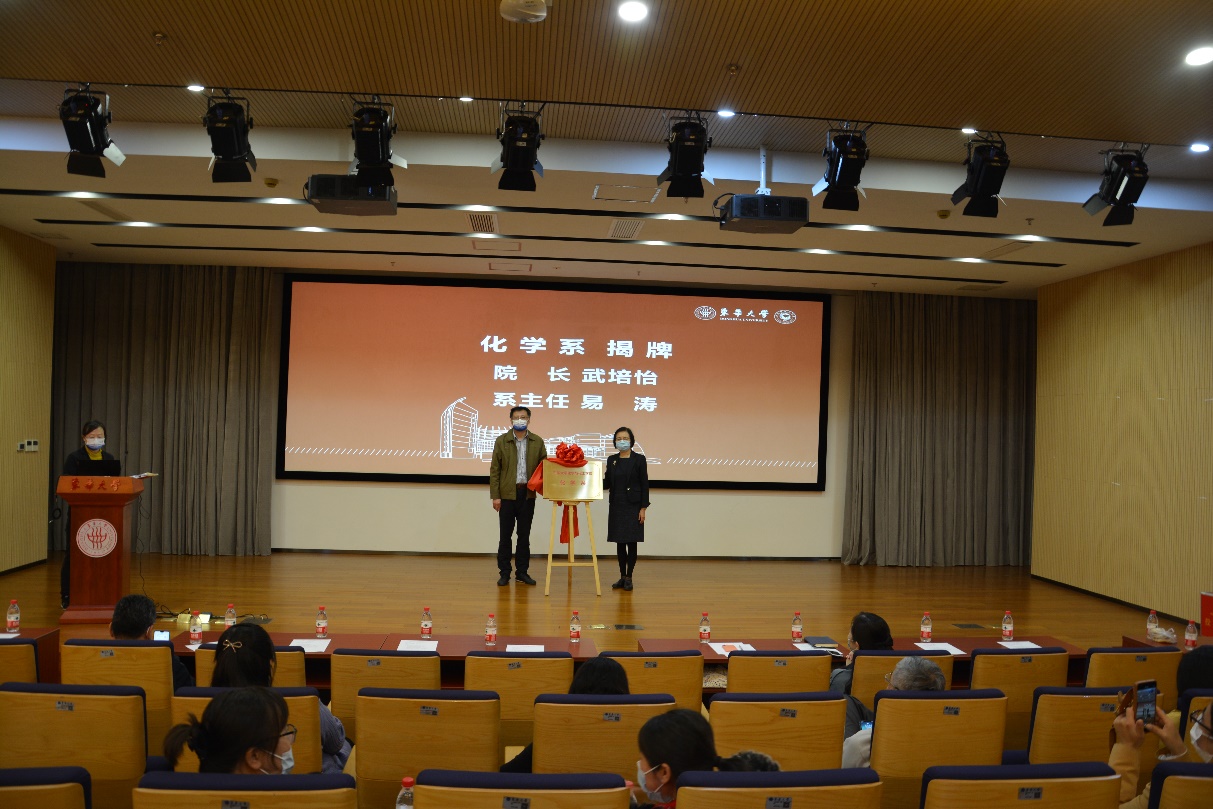(院长武培怡和化学系主任易涛为化学系揭牌)