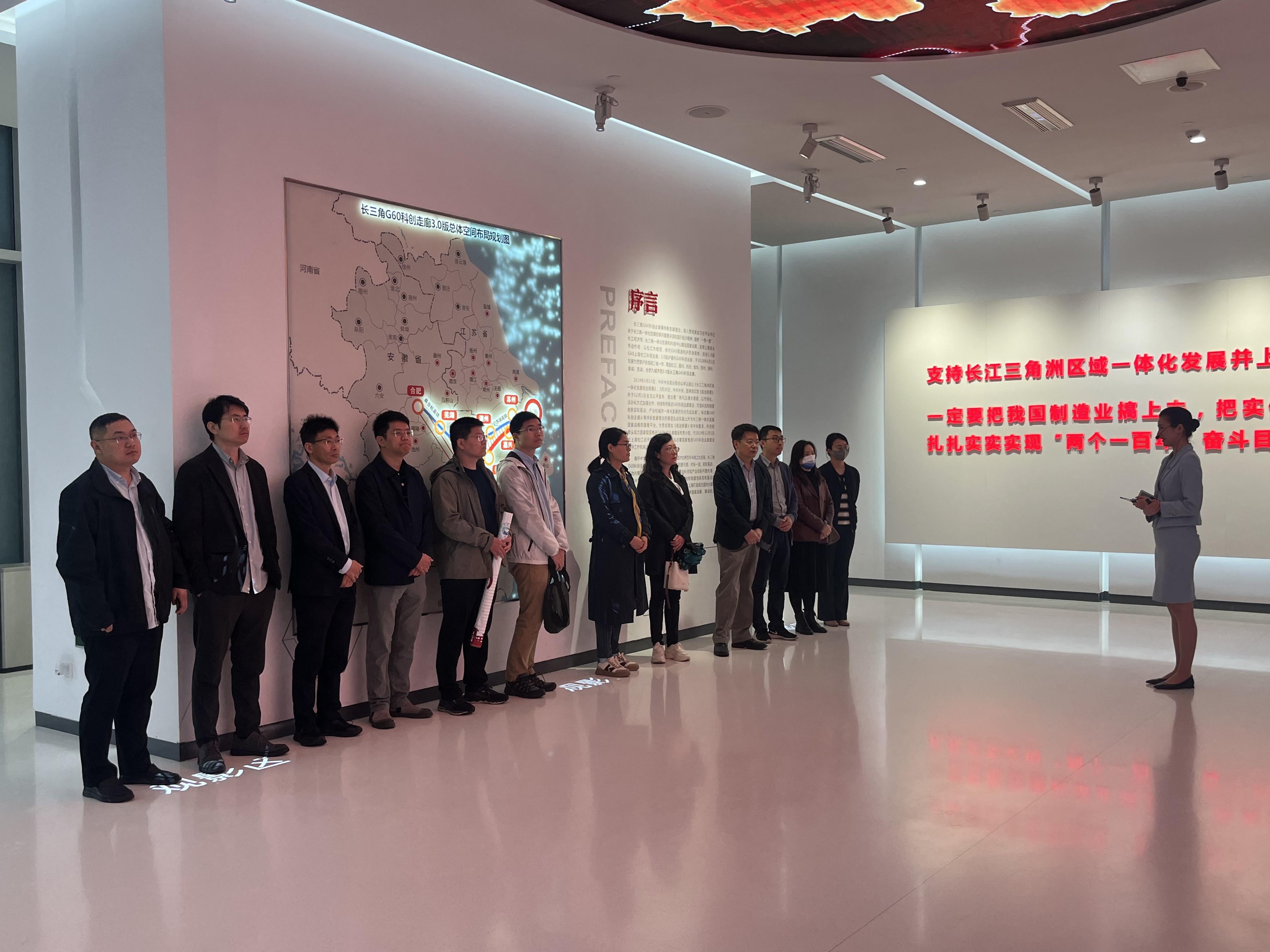 置地娱乐场 尚实论坛青年教师培训班(三期)一行首先参观长三角G60科创走廊规划展示馆。通过观看长三角G60科创走廊专题片,了解走廊建设总体发展规划、发展历程、战略及功能定位、跨区域协同发展等情况。重点了解生物医药、人工智能和新材料等一批重点项目和产业链在长三角G60科创走廊的发展状况。