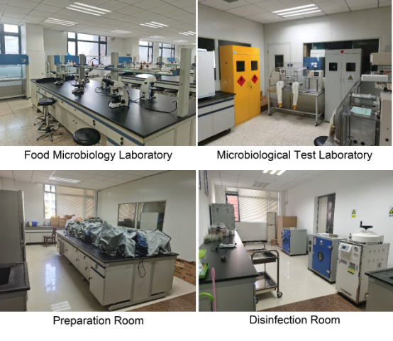 It is equipped with laboratory benches, water bath pots, electronic balances, chopping machines, electric stoves, and other commonly used food processing equipment, and an air conditioner, fume hoods, a water supply, and sinks to meet the required experimental conditions.