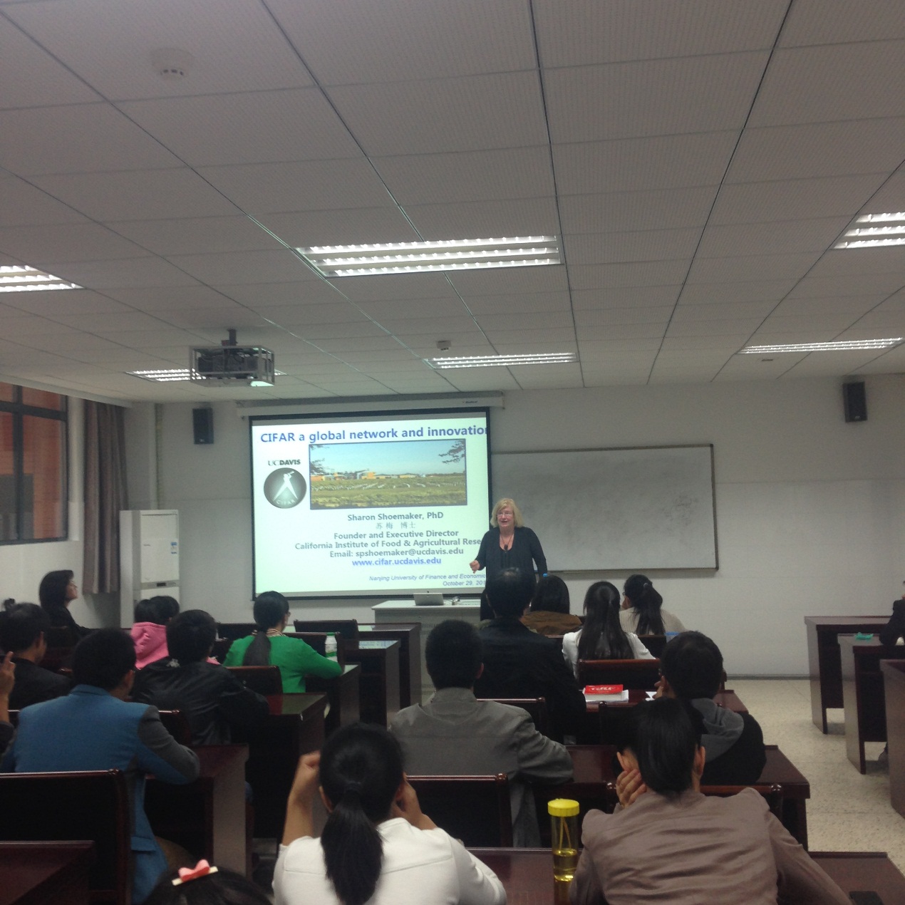 Sharon Shoemaker博士结合自己多年的研究工作,系统介绍了CIFAR(加州大学食品与农业研究所)的成立时间、发展历程及目的,全面阐述了CIFAR在国际食品与农业交流合作方面取得的一系列进展和成果,并对当今世界食品安全所面临的一系列问题进行探讨。在报告尾声,Sharon Shoemaker博士与置地娱乐场