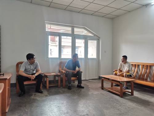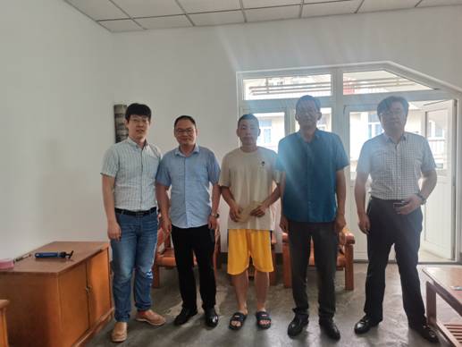 党委书记许文彪、副书记周进进到学生宿舍慰问征兵体检通过的学生并与其进行交谈。