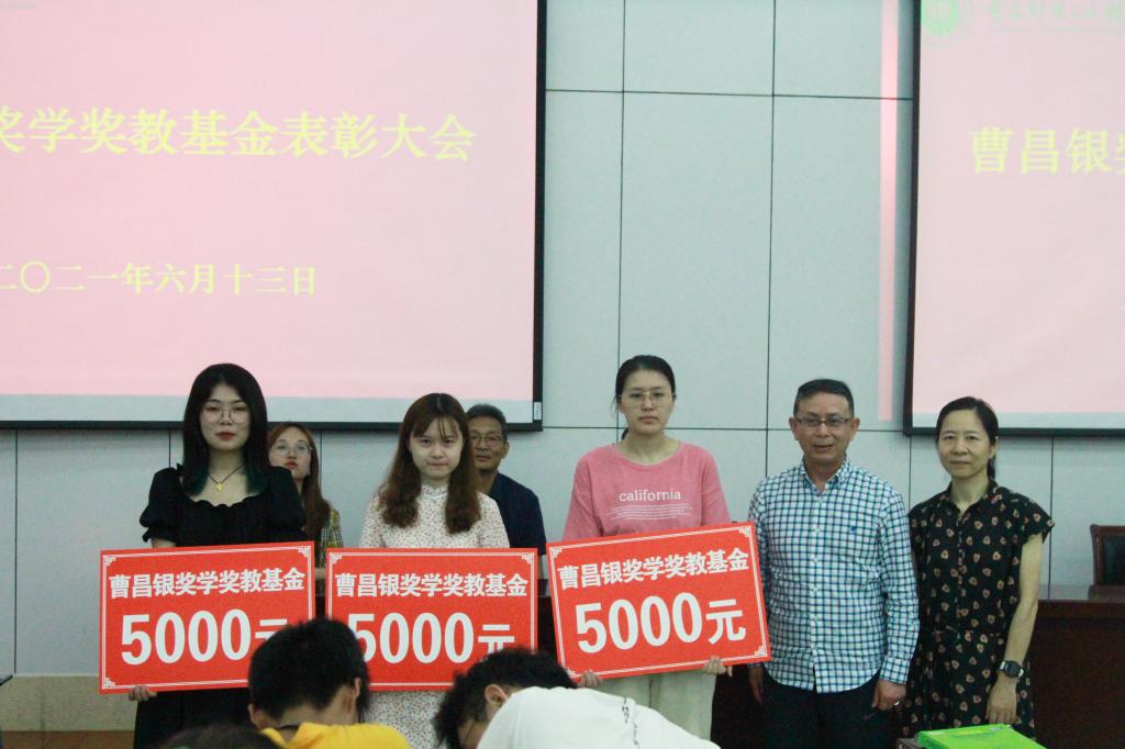 应届毕业生。许文彪书记首先宣读了曹昌银奖学奖教基金关于应届毕业生考取本院硕士研究生奖励办法,每人奖励5000元。曹昌银董事长和冯建红女士为获奖的毕业生进行了颁奖。最后,曹昌银董事长表达了对母校的感激和身为南财人的自豪之情,讲述了创业过程的艰辛与努力,他希望学弟学妹不仅要勤奋、踏实学好专业知识,还要多参加社会实践,提高自身修养,不断完善自己,早日成为国家和社会的栋梁之才!