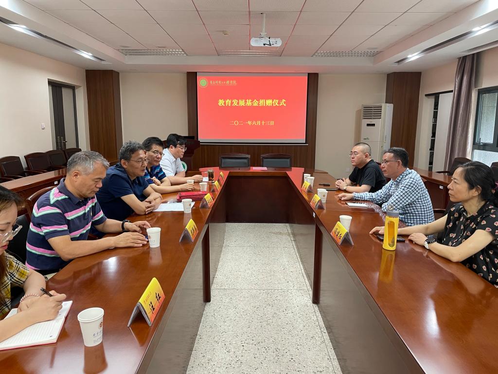 教育发展基金捐赠仪式在工科楼211会议室举行,粮油储藏8304班校友、侨基集团董事长曹昌银先生及夫人冯建红女士,应用化学0941班校友、中青产经资本有限公司董事长芦刚,置地娱乐场