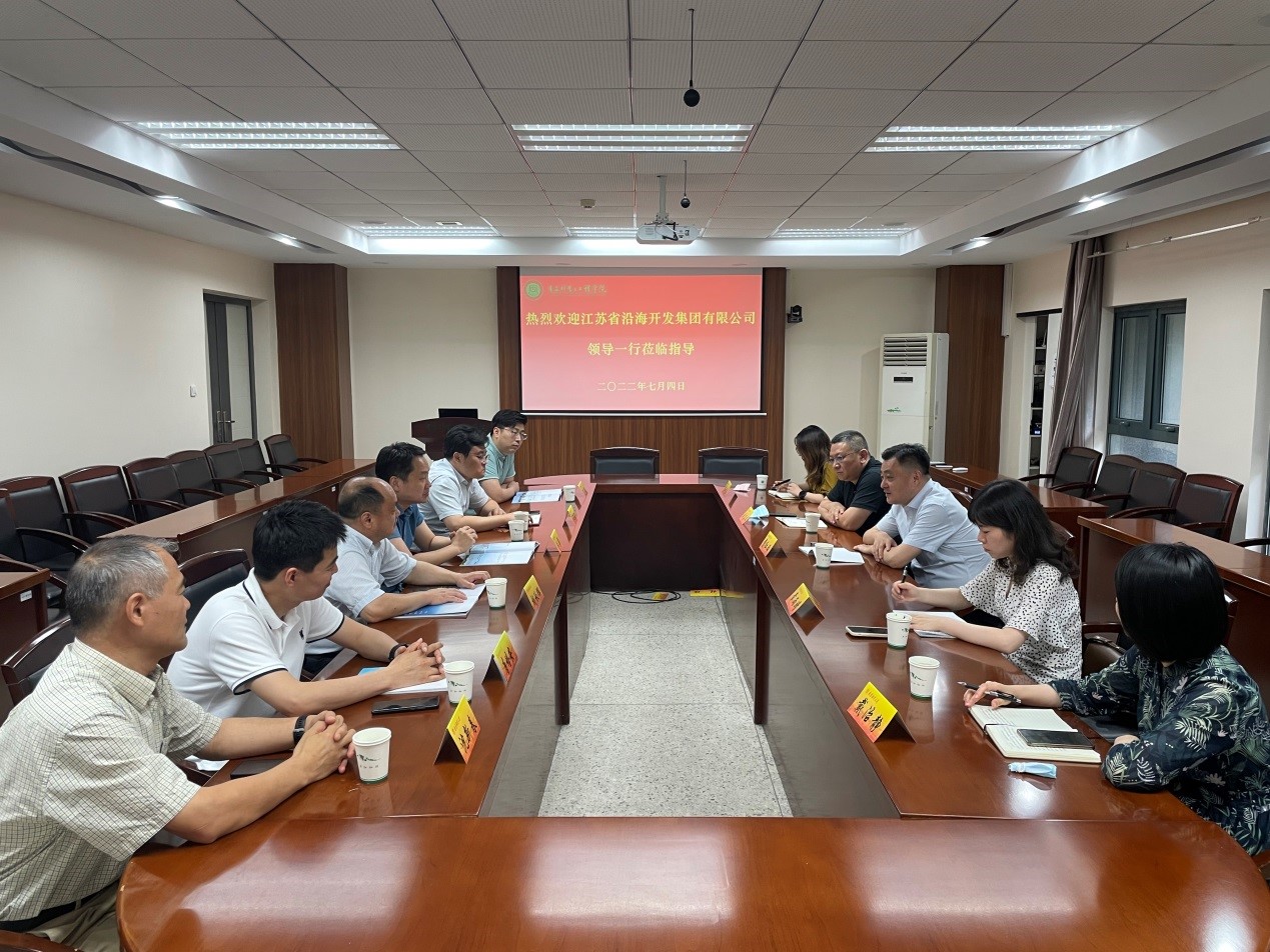 7月4日,江苏省沿海开发集团有限公司投资发展部总经理费红日、业务经理章雨晴,农发公司党委委员、副总经理(主持工作)刘志义、市场营销部经理戴治静和科技服务中心常诗洁一行来置地娱乐场