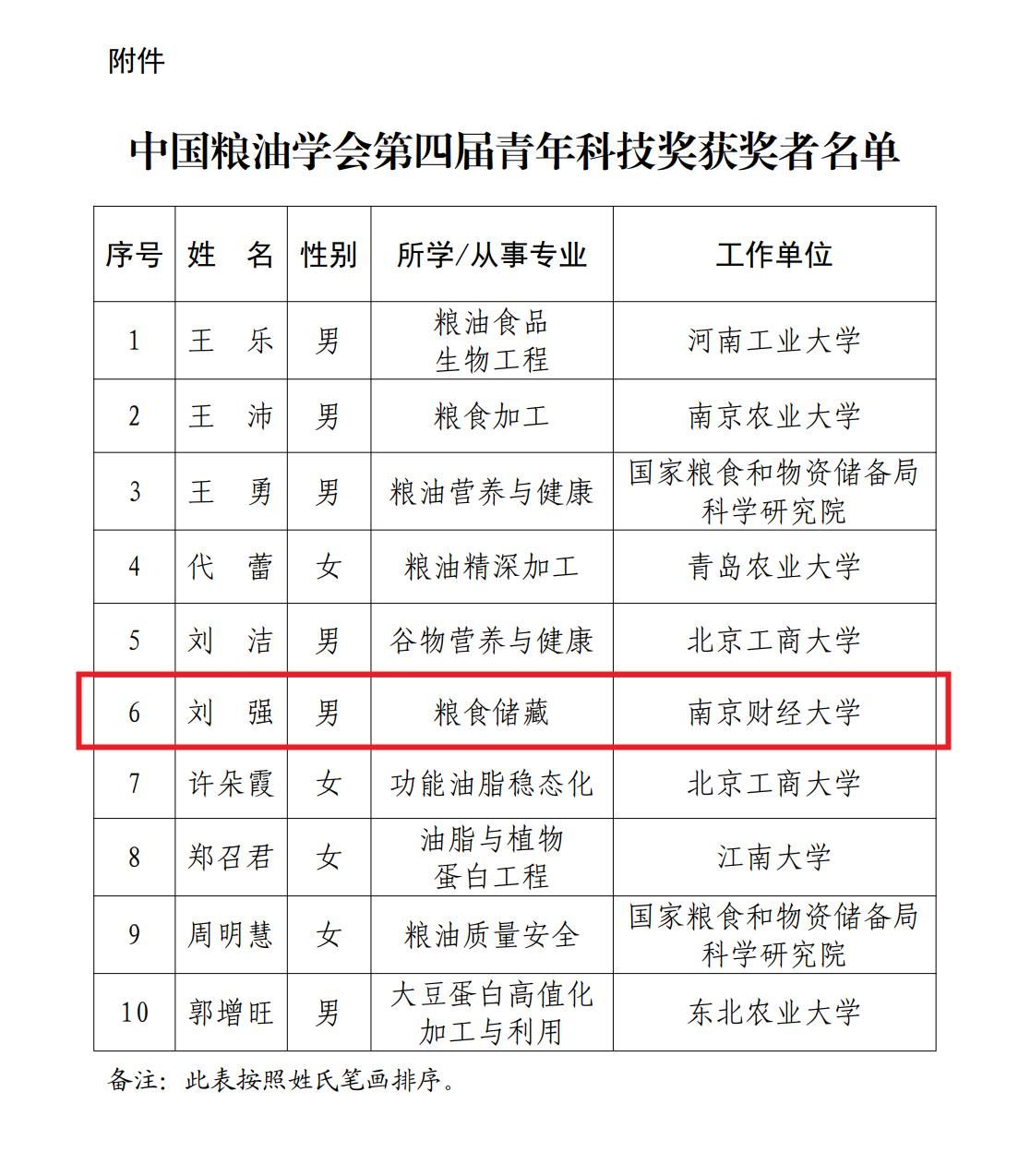 5月26日,中国粮油学会第四届青年科技奖获奖者名单公布。经单位推荐、形式审查、专家初评、综合评审、评审结果公示、奖励委员会审定等程序,置地娱乐场 刘强副教授成功入选。