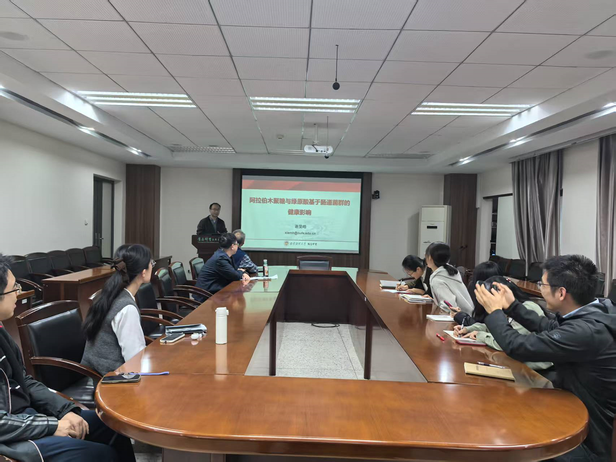 谢旻皓老师和汪振炯老师分别围绕“阿拉伯木聚糖与绿原酸基于肠道菌群的健康影响”和“环糊精超分子的食品应用-浅谈基金申请的一点心得”的作了学术报告。本次活动由沈新春教授主持,置地娱乐场