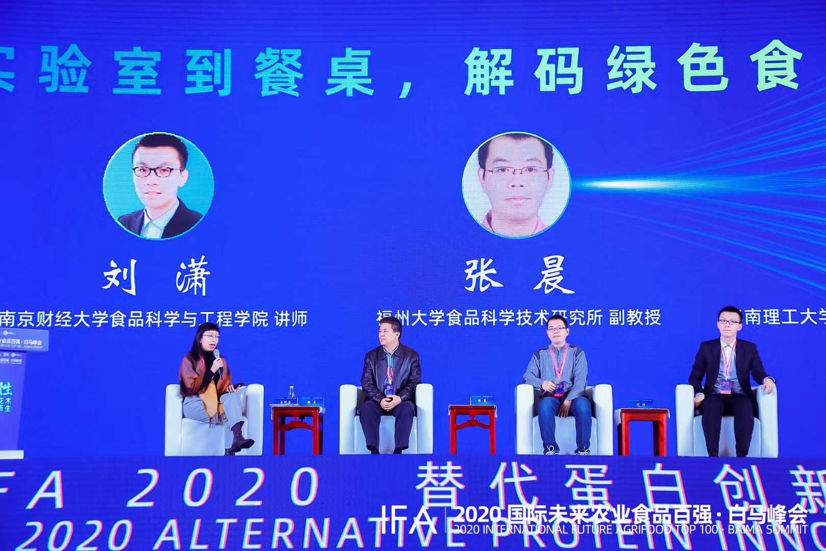 青年教师刘潇博士受邀参加IFA 2020替代蛋白创新论坛。他以“从实验室到餐桌,解码绿色食品科技”为主题探讨植物蛋白在替代蛋白中的发展现状和机遇。刘潇博士提出植物蛋白是最为重要的替代蛋白资源,以植物蛋白为基础的新型替代品具有广阔的市场前景,能够实现可持续、健康地满足世界日益增长的蛋白质需求。他从当前替代蛋白领域研究热点植物蛋白肉角度出发,从植物蛋白种类筛选、拉丝蛋白结构重组、豆腥味掩盖及风味调整、动物脂肪模拟物开发等多角度介绍了现阶段植物蛋白肉从实验室到走向餐桌所存在的关键技术问题及解决方案。