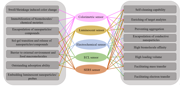 总而言之,尽管水凝胶基材料在食品安全快速传感方面显示出巨大的潜力,但在它们能够广泛用于商业化的食品安全控制系统之前,仍需继续努力。通过多学科合作,如高分子工程、材料科学和生物化学,水凝胶基传感器有望在未来进一步促进食品安全监测的效率。