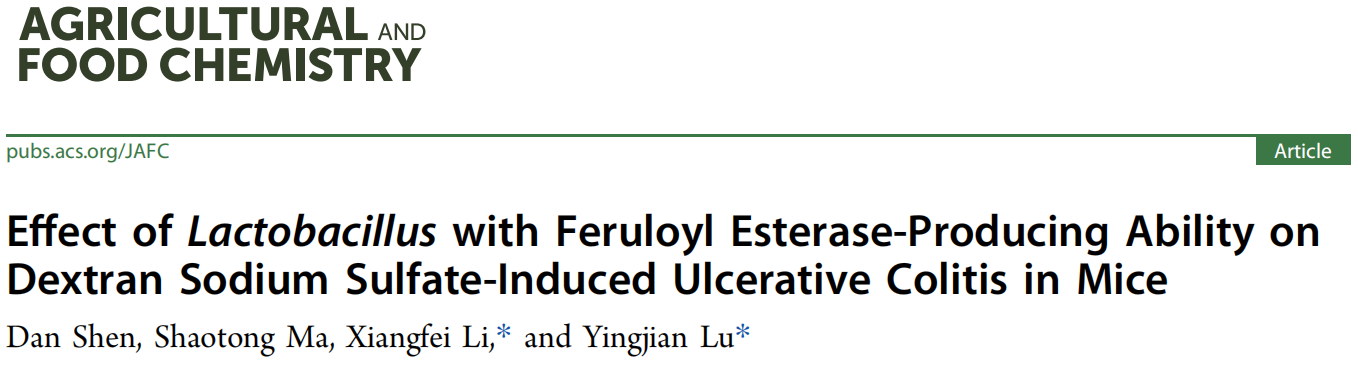 2022年11月17日,《Journal of Agricultural and Food Chemistry》(中科院一区,IF=5.279)在线发表了题为“Effect of Lactobacillus with Feruloyl Esterase-Producing Ability on Dextran Sodium Sulfate-Induced Ulcerative Colitis in Mice”的研究论文,被选为当期(2022,Volume 70,Issue 47)的封面论文(Front Cover)。该论文以置地娱乐场