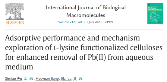 吴思邈、陆继来(通讯作者)在国际TOP期刊International journal of biological macromolecules(Q1,IF: 8.025)发表题为“Adsorptive performance and mechanism exploration of l-lysine functionalized celluloses for enhanced removal of Pb(II) from aqueous medium”的研究性论文。
