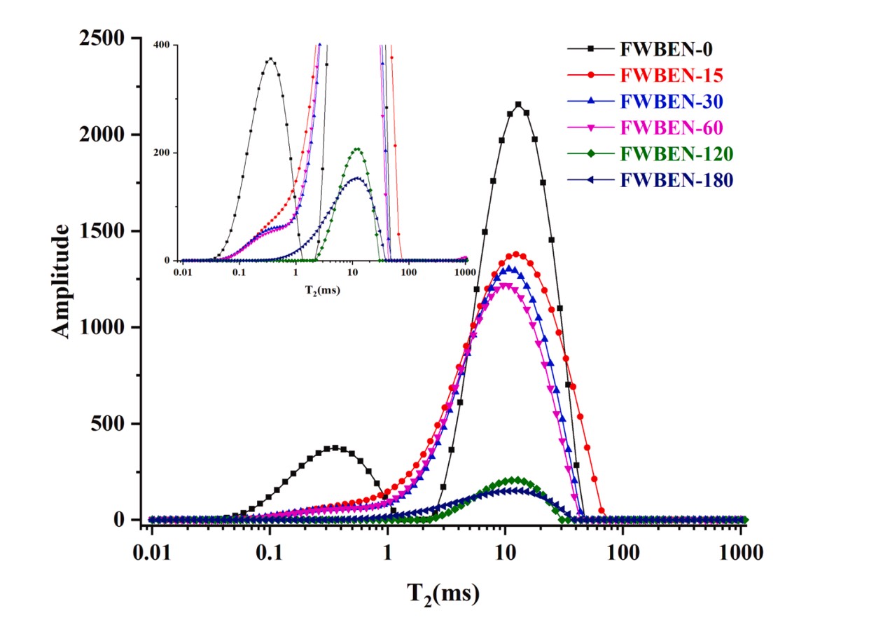 图2 冷冻储藏期间全荞麦挤压面条的水分分布;插图为局部放大图片