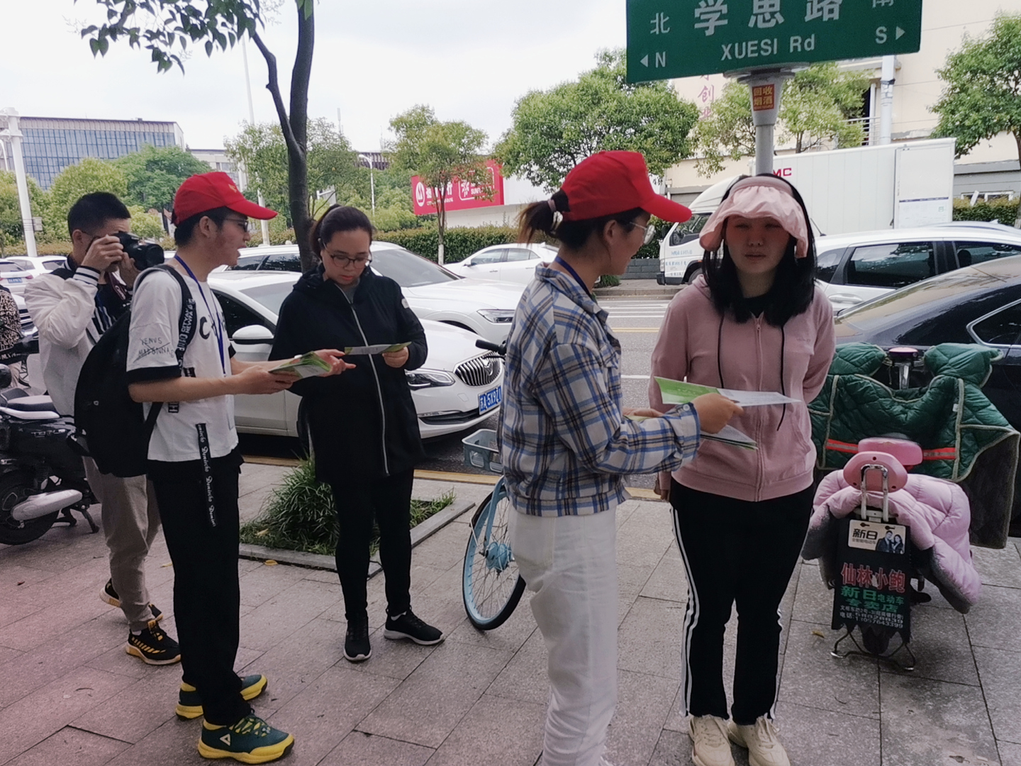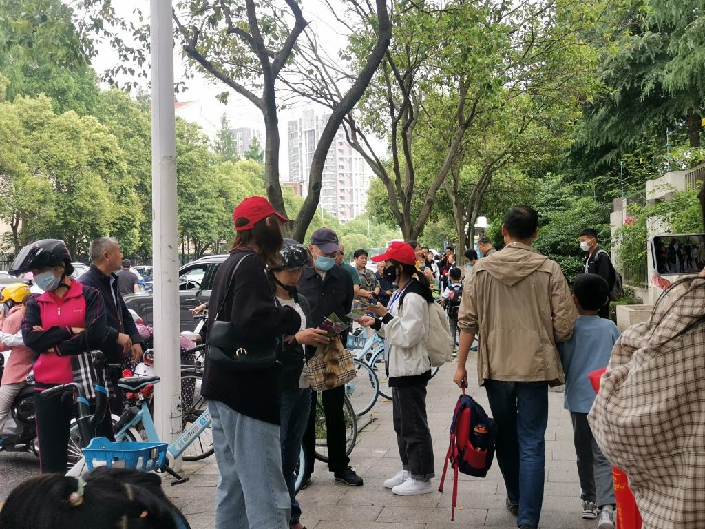 外向学生家长们发放自编的食品营养手册,向家长们介绍食品营养知识。
