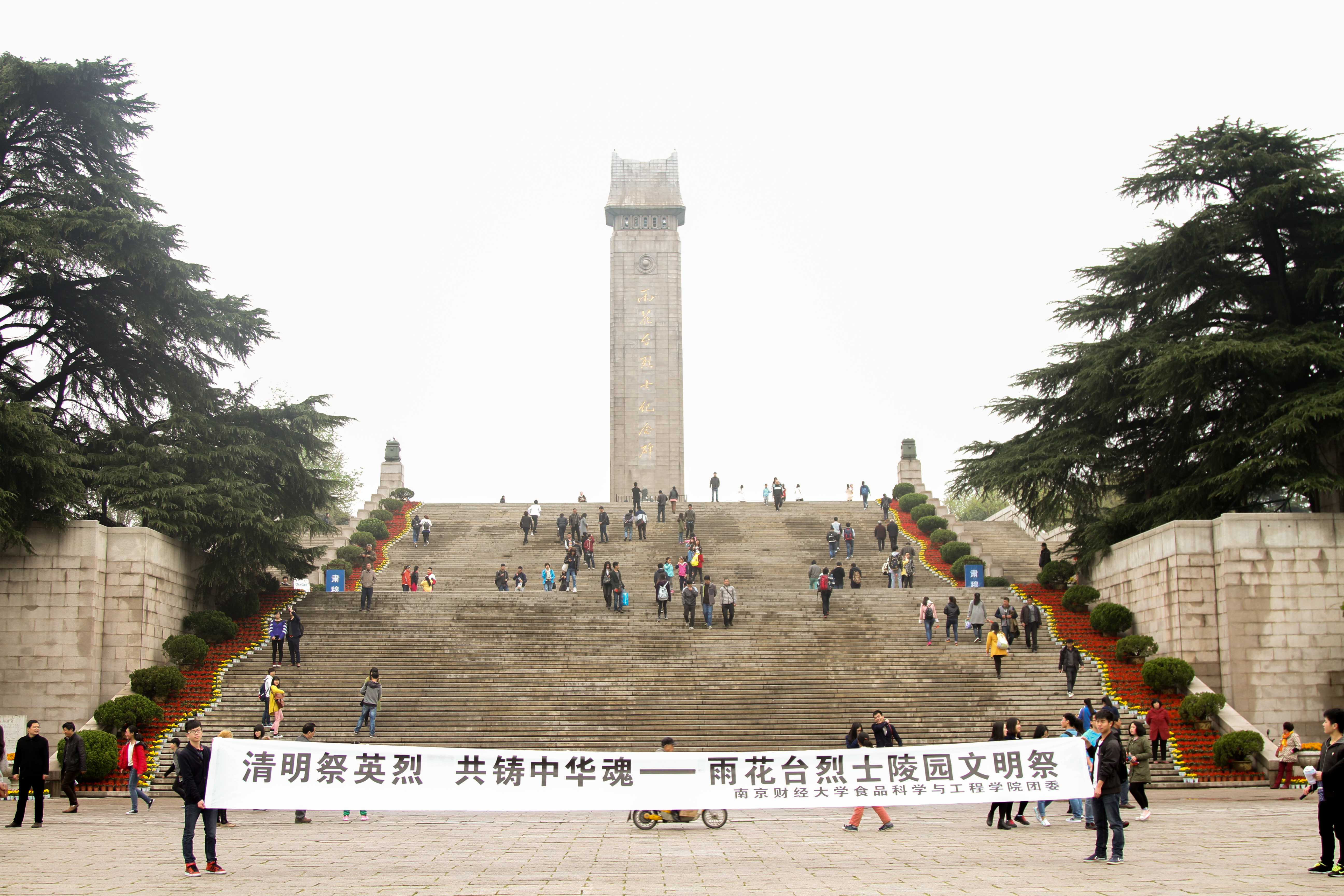 一行人来到雨花台,怀着庄严肃穆的心情地踏进烈士陵园。虽然清明时节雨纷纷,但是前来祭扫的人们却络绎不绝。面对着巍峨庄重的烈士纪念碑,同学们神情庄重,纷纷用深鞠躬表达了对先烈的敬仰和缅怀之情。走进纪念馆中,看着一本本泛黄的书页,一件件破旧不堪的衣袄、毛毯和一把把生了锈的刀、剑、枪,同学们真真切切地感受到了革命先烈们生活的艰苦困窘,为他们在逆境中英勇奋斗的精神深感敬佩。为如今的幸福生活的获得,无数先烈们用鲜血和生命做出了巨大的牺牲。参观完纪念馆后,同学们感触颇深,怀着百感交集的思绪走出了纪念馆。