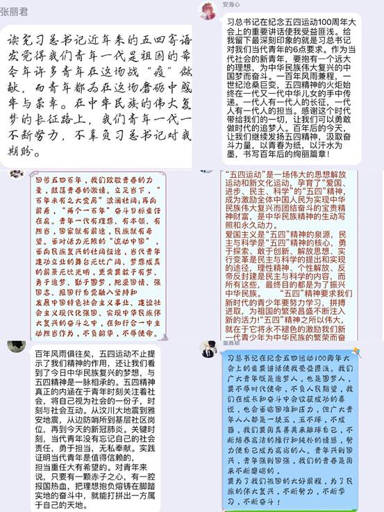 师生通过线上线下多种方式,深入学习、交流讨论,他们纷纷表示,要牢记习近平总书记和娄勤俭书记的寄语,继承和发扬五四精神,为推动置地娱乐场
