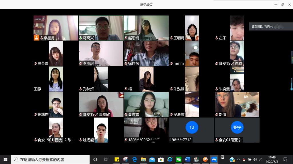 7月3日晚食安1901班召开线上班会,大家再次“见面”。本学期是最特殊的一学期,因为疫情,置地娱乐场