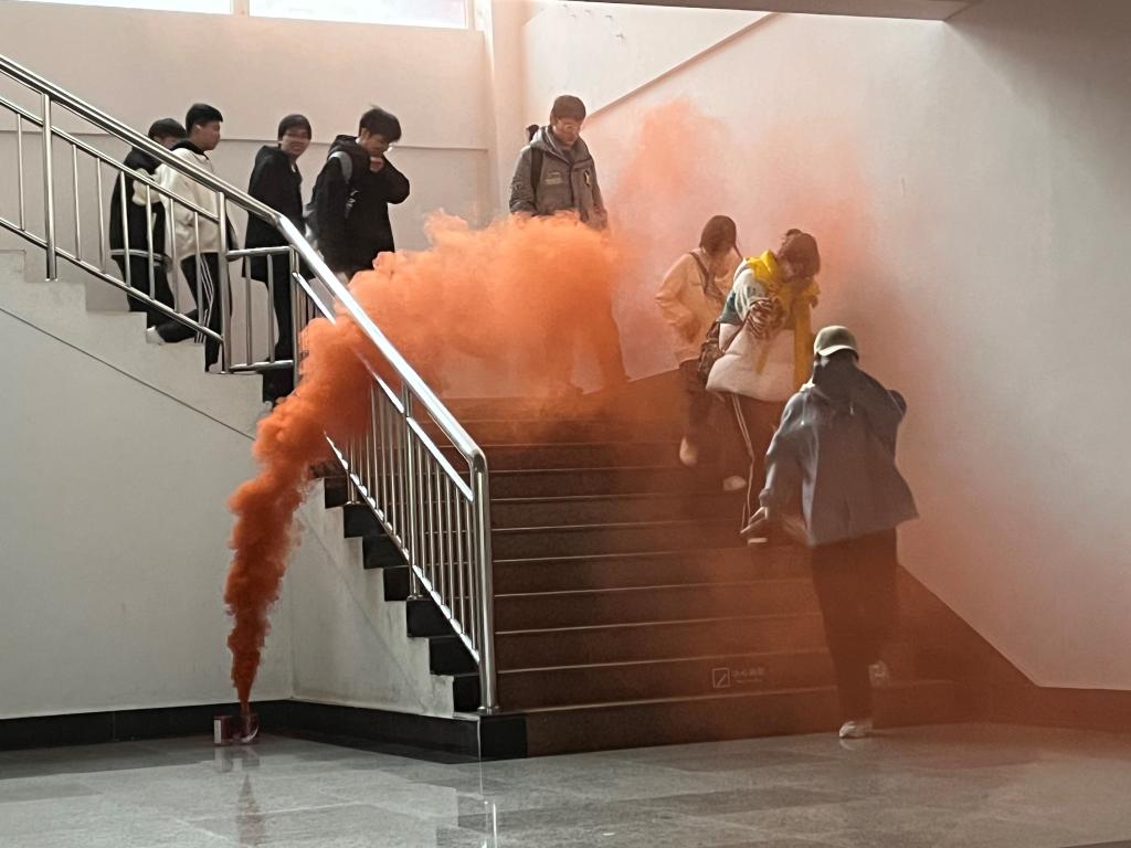 保卫处牵头,带领2023级新生进行应急逃生演练,并向同学们讲解了灭火器的相关使用方法。