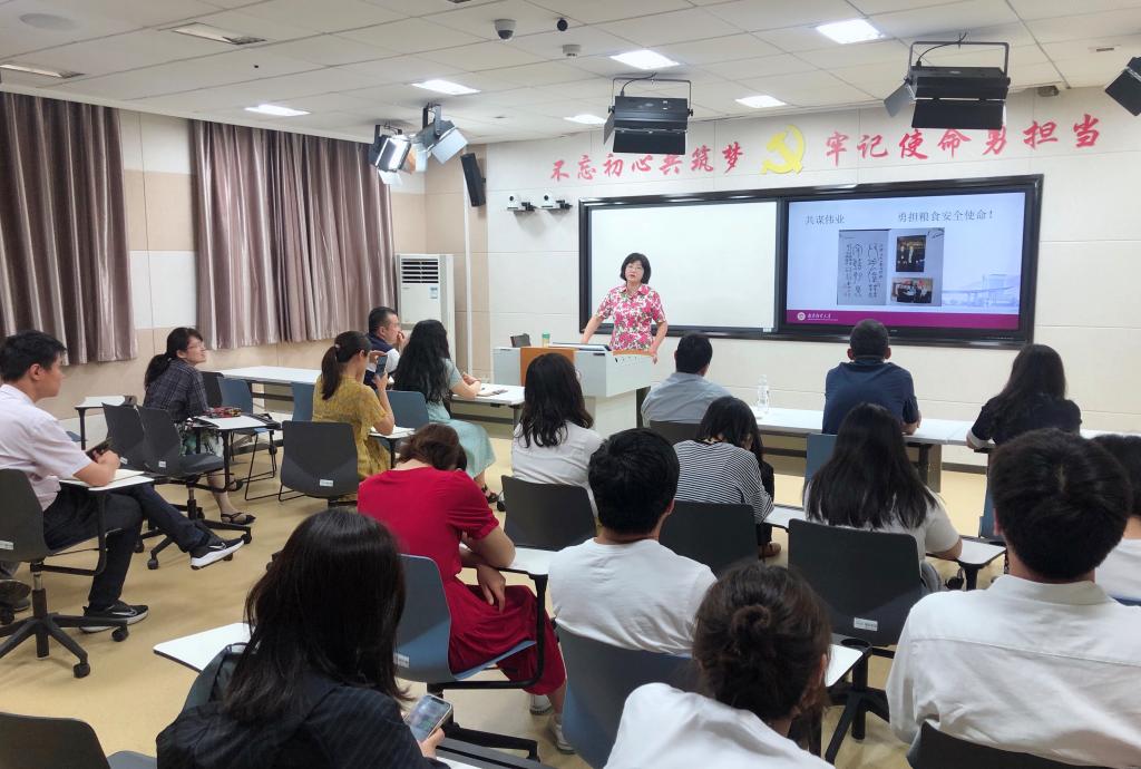 粮食学科建设,阐述了我国粮食产业的基本情况、历史渊源、发展历程以及粮食安全在国家安全发展中的关键作用和深刻内涵等重要内容。邱伟芬副校长强调,食物的演化始终伴随着人类社会的进步和变革,一部中国文明史就是一部粮食资源争斗史。中国百姓曾经深深地苦于粮食短缺,粮食的丰歉与中国历史的动荡与变迁如影随形。中国共产党带领中国人民进行了解放斗争、土地革命、进行了改革开放,在任何时候都不忘粮食安全这重大问题,实施了一系列粮食安全发展战略等,这一系列伟大历程终于让人民端起了饭碗,也端稳了饭碗。