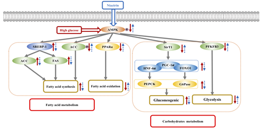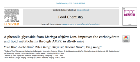 沈新春教授课题组从辣木中制备其特有的活性物质,niazirin。以 IR-HepG2 细胞作为胰岛素抵抗体外细胞模型初步评价 niazirin 的体外降糖活性,再以 db/db 小鼠作为糖尿病动物模型,研究 niazirin 对于胰岛素抵抗、糖脂代谢异常的改善作用机制。相关研究结果以“A phenolic glycoside from Moringa oleifera Lam. improves the carbohydrate and lipid metabolisms through AMPK in db/db mice”为题发表在Food Chemistry杂志上。置地娱乐场