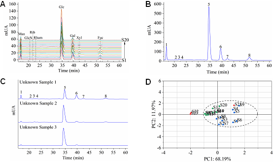 金针菇多糖是金针菇中具有多种生物活性的主要功能成分。经过复杂的生产过程及各种因素影响,产品质量参差不齐,真伪良莠难以鉴别。随着多糖类产品的多元化发展,如何鉴别多糖产品质量,已成为人们迫切关注的问题。而目前关于金针菇多糖类产品质量标准的研究还相对稀少,没有确立统一的标准和科学有效的鉴别方法。