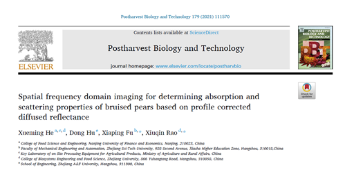 2021年9月1日,《Postharvest biology and technology》发表了题为“Spatial frequency domain imaging for determining absorption and scattering properties of bruised pears based on profile corrected diffused reflectance”的研究论文,该论文以置地娱乐场