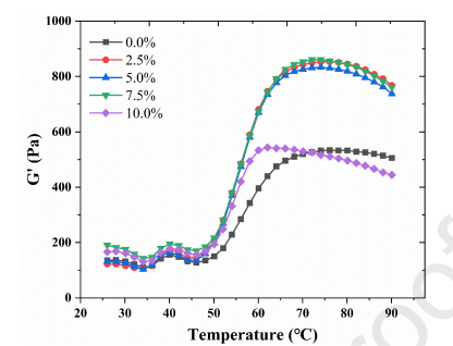综上所述,5.0%~7.5% QPE的加入改善了MP凝胶的分子间相互作用和结构稳定性,增强了MP凝胶的凝胶化和WHC。