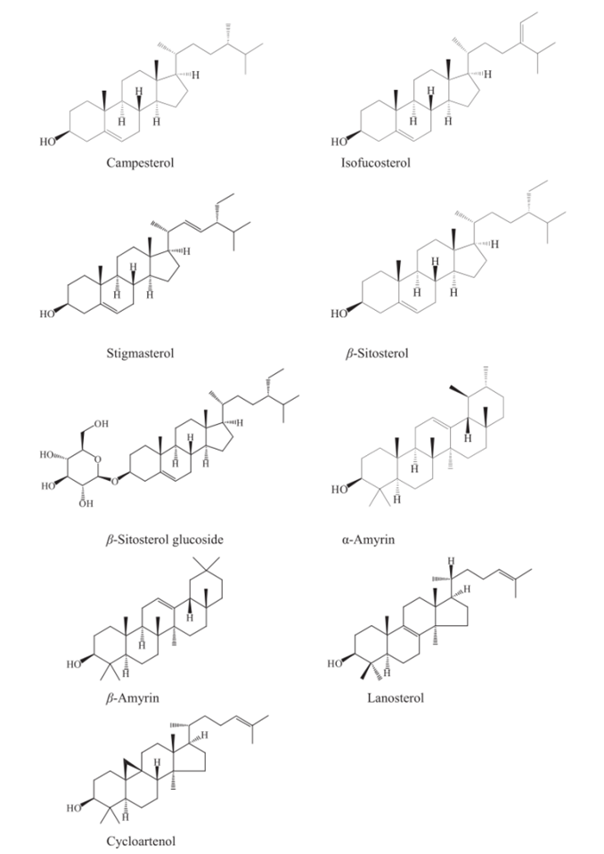黄酮类化合物是一组植物多酚类化合物,具有多种生理活性,如抗过敏、抗炎、抗氧化、抗肥胖和止血等作用。生物碱是植物中含有碱性氮原子的一组化合物,已被发现具有抗氧化、抗炎、抗癌、镇静和抗HIV的作用等。脂类,包括食物中的脂肪酸、植物甾醇、甘油酯和其他酯类,在人体中也具有不同的生理作用。植物甾醇是一种与胆固醇结构相似的类固醇,几乎存在于所有植物性食品中。多项研究表明,脂质具有抗炎作用,并对阿尔茨海默病具有潜在的保护作用。