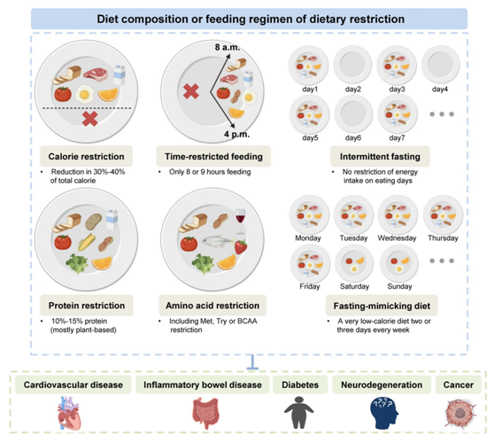 图1. 不同饮食限制的差异及其对健康的调控
